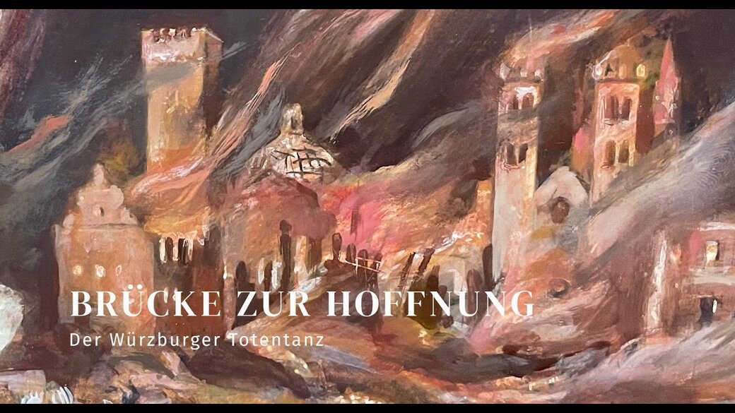 1970 schuf der Maler Wolfgang Lenz (1925-2014), der als bedeutender Vertreter des Phantastischen Realismus gilt, sein berühmtes Werk „Würzburger Totentanz”. Darin stellte er die Ruinen seiner Heimatstadt Würzburg dar. Im Vordergrund malte er die Alte Mainbrücke. Deren Brücken-Heiligen erscheinen hier als überlebensgroße Skelette – eine Mahnung an die Zerstörungswut des Zweiten Weltkriegs. Die Farben, die Lenz dafür wählte, sind dunkel und bedrückend, die Gerippe der Heiligen furchteinflößend, die Stimmung hoffnungslos. Aufbewahrt wird dieser erste Totentanz ebenfalls in Würzburg, und zwar im Museum für Franken.